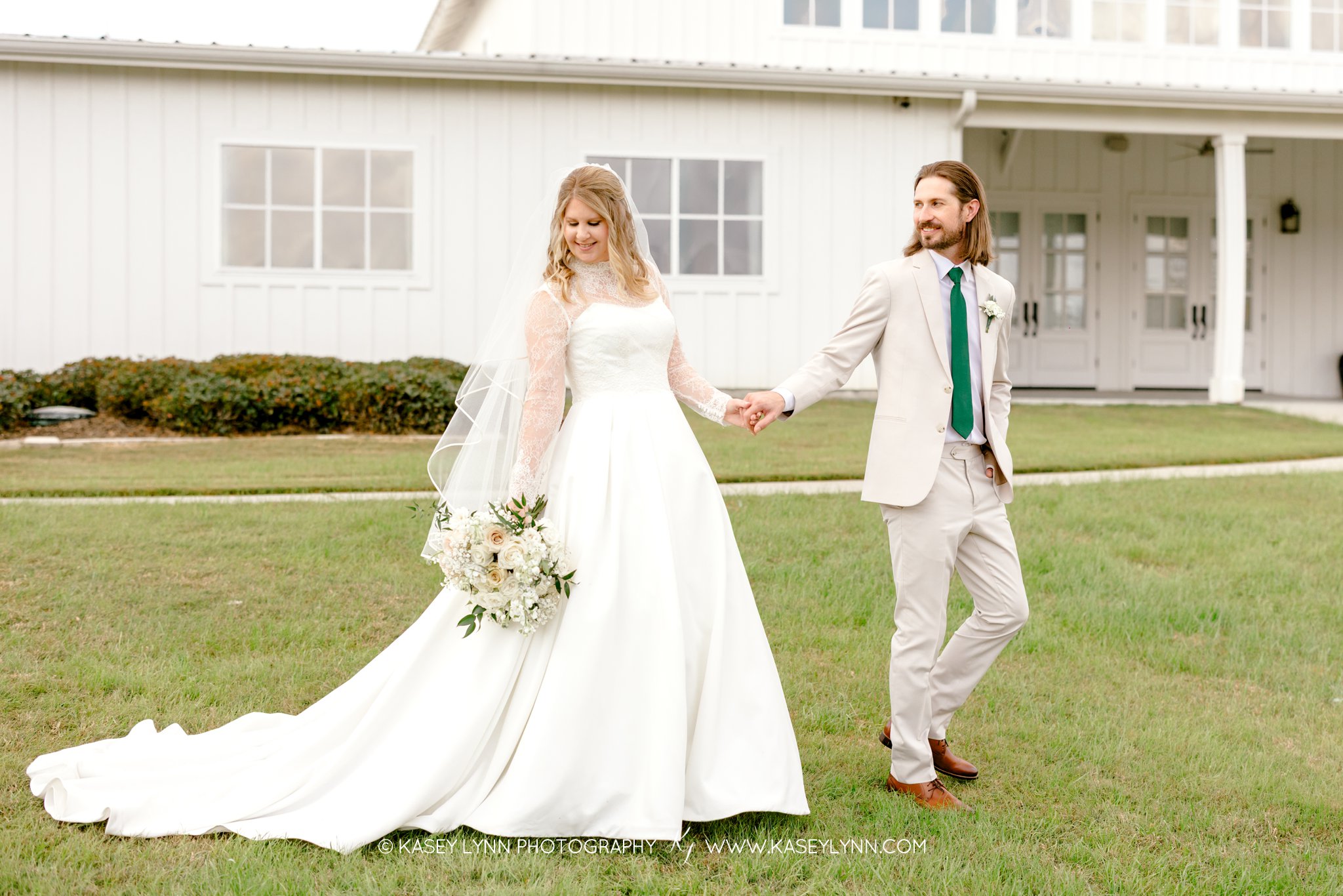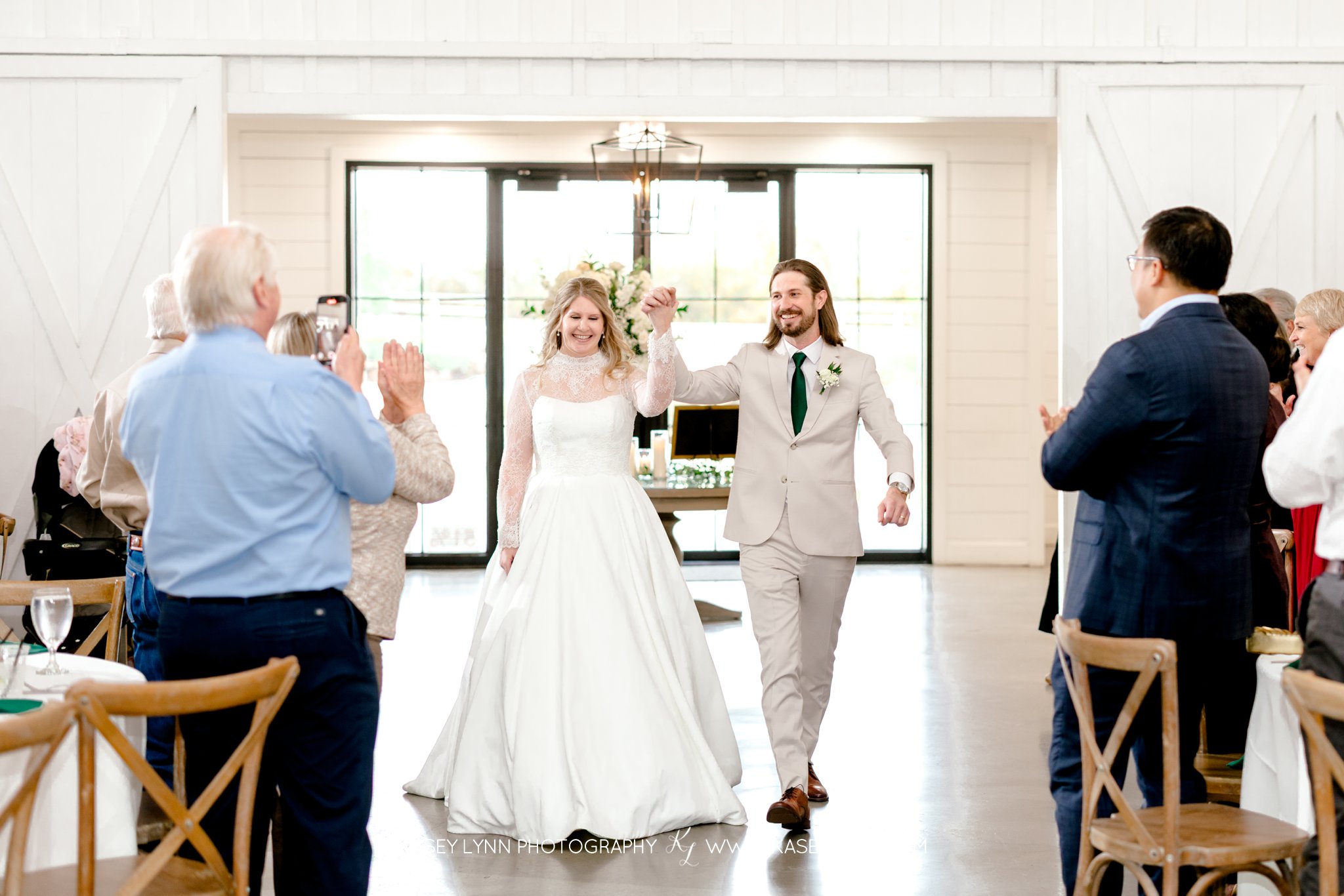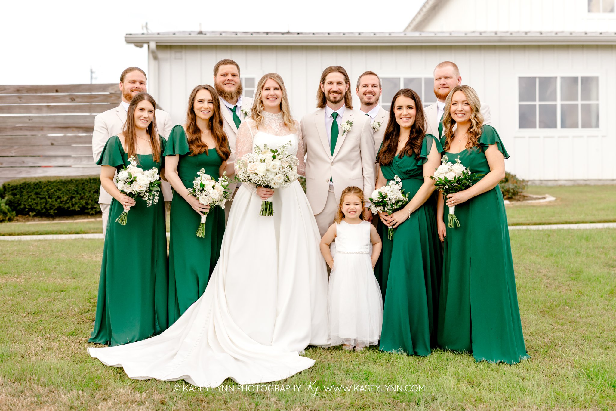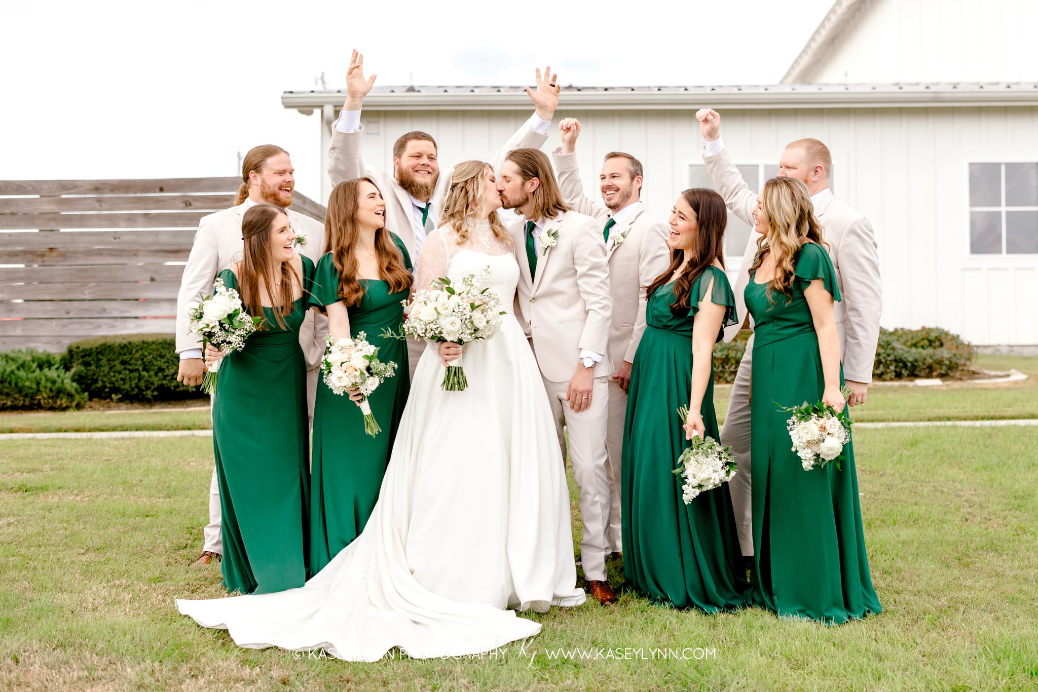 After the ceremony, guests gathered at The Farmhouse in Montgomery, TX for the reception. This venue is loved for its farmhouse elegance, open spaces, and classic Southern feel — making it an ideal setting for a warm and inviting celebration. The transition from church ceremony to farmhouse reception allowed the day to flow beautifully while giving everyone time to relax and celebrate together.